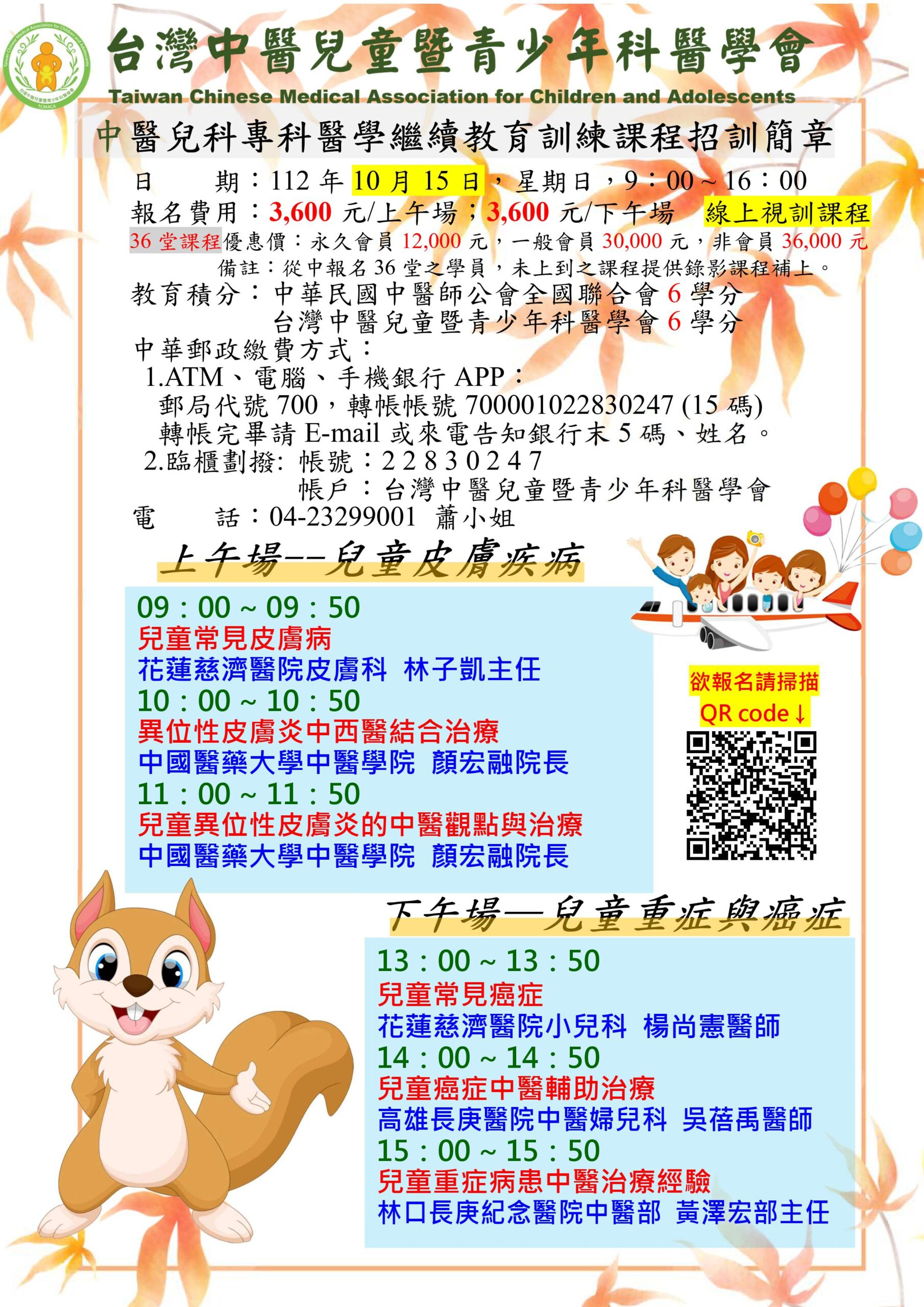 Home Blog 報名專區 兒科專科醫學繼續教育訓練課程 112年度 《課程簡章》一 10.15課程簡介與報名連結