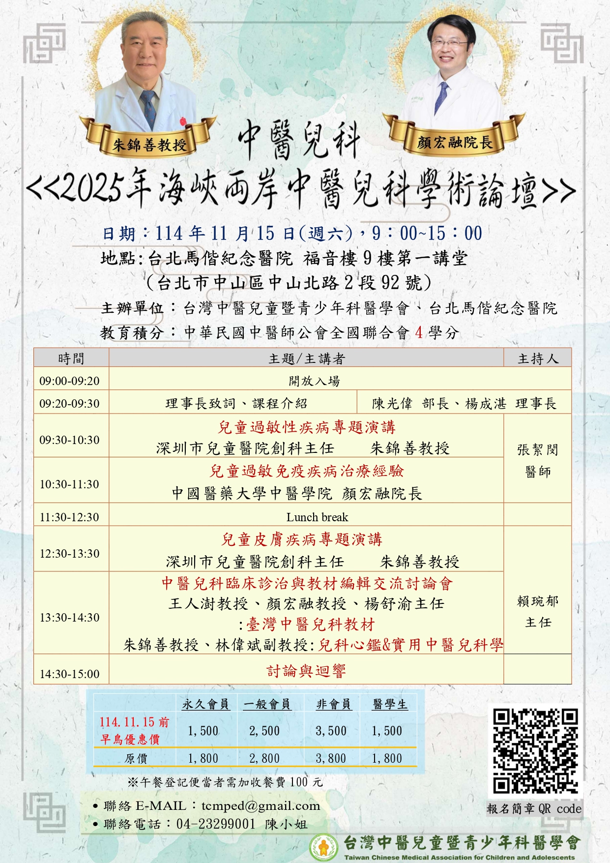 1.中醫兒科 <<2025年海峽兩岸中醫兒科學術論壇>> (實體課程)