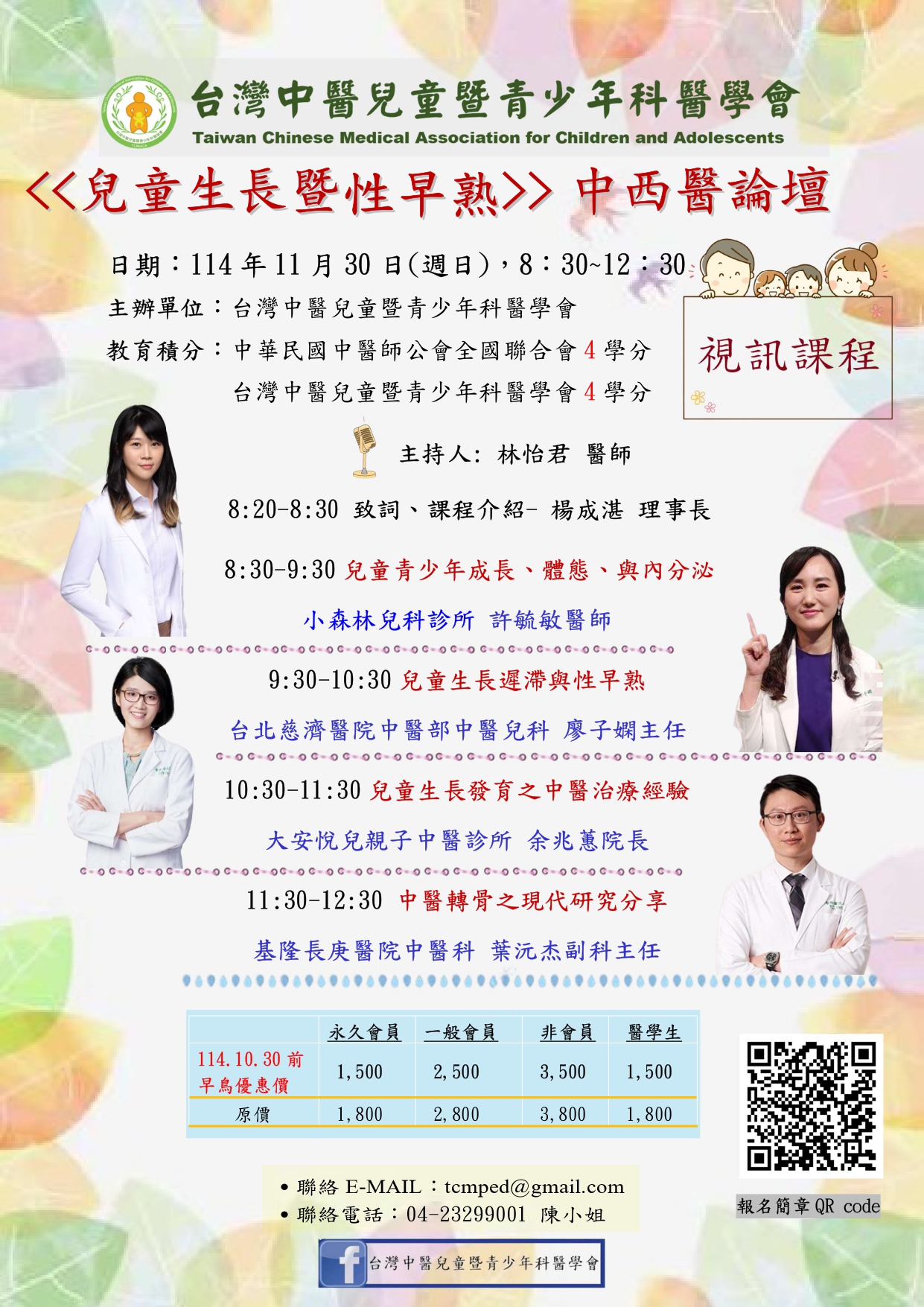 2. <<兒童生長暨性早熟>> 中西醫論壇 (線上課程)
